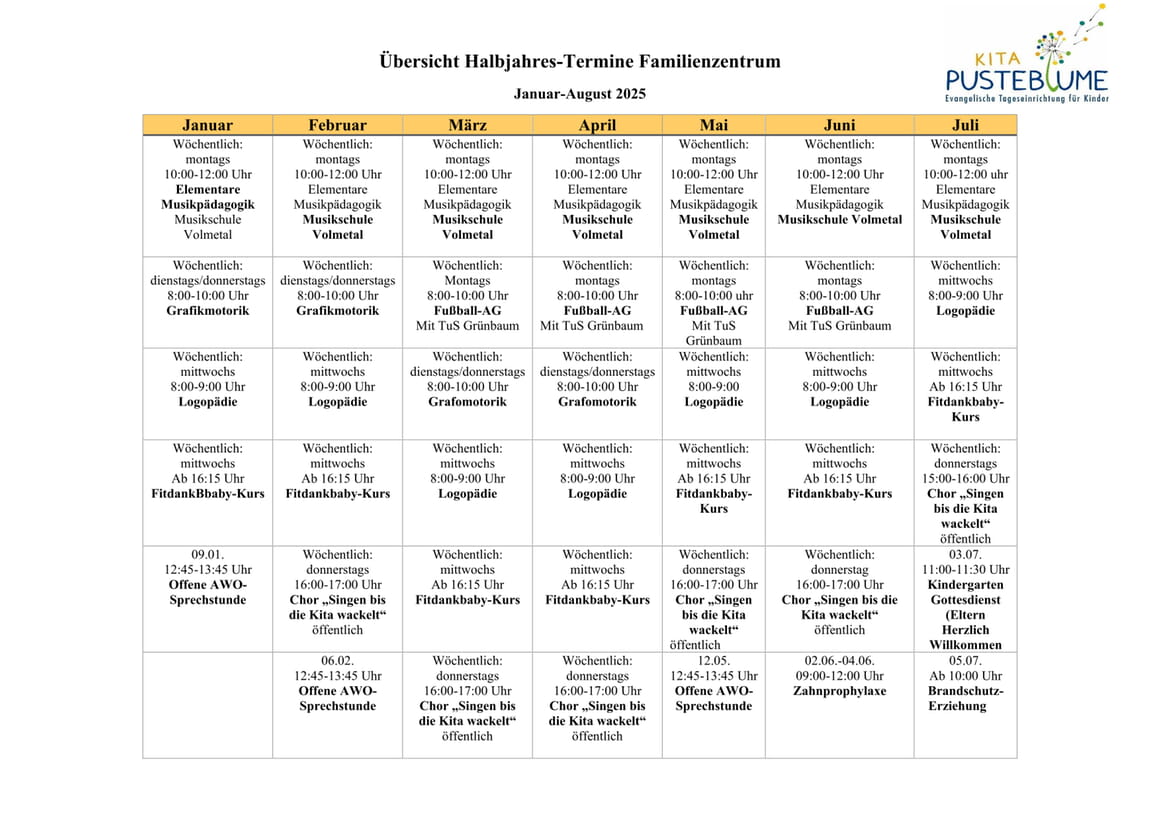 Die Evangelische Kirchengemeinde Halver sucht für unsere KiTa und Familienzentrum „Pusteblume“ eine/n Erzieher*in / Heilerziehungspfleger*in oder jemanden mit vergleichbarer Ausbildung zum nächstmöglich Termin in Vollzeit.